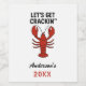 Nautical, summer and sea food theme. A red lobster on a white background. Quote: Let's get crackin' Personalise and add a name and year.