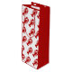 Red lobster pattern wine size gift bag. Lots of lobsters crawl across the front and back of this tall bag meant to hold a bottle.