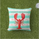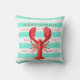 Red lobster turquoise white nautical stripes cushion