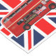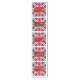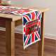 This colourful table runner decorated with a pattern featuring the famous red double-decker bus placed over the Union Jack will brighten up any celebration party! Colours used: red, white, blue, and black.