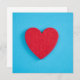 This design features an image of a bright red heart that was originally made out of felt; it is set against a light blue background.