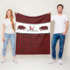 Red Lumberjack Plaid Bears Monogram Fleece Blanket