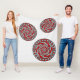This concentric circle design contains layers of geometric patterns that resemble gears that you might find in modern or even alien machinery, in shades of red and grey.
