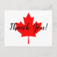Create your own bright red Canadian flag style maple leaf thank you postcard for a wedding or other event. You can change the pretty calligraphy text. Red, white and black thank you postcard.