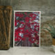 Liven up your living space with this glossy style poster print that features the photographic image of a branch of flaming, red maple leaves along with a Giant Sequoia tree in the background. A stunning, botanical image! Customise your poster size as desired. Frame not included.