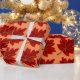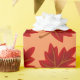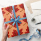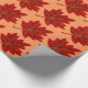 Red maple leaves design over a rustic fall orange colour wrapping or decoupage paper.