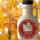 Edit your business name, address, volume of maple syrup and grade. Sugar maple leaf on dark red background with white chalkboard text. Simple white line along border of label.
