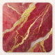 Red Marble Pattern with Gold Square Paper Coaster