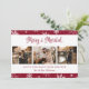 Cute red newlywed photo holiday card featuring snowflakes on a plain red background and a photo collage. Easily personalise this merry and married photo holiday card with your photos and text.