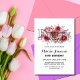 Elegant floral birthday invitation features stunning watercolor red maroon roses bouquet with the word "forty" in black.