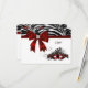 Zebra and mask diamond centred bow red black sweet sixteen birthday party masquerade ball RSVP cards.