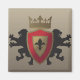 Mediaeval Lion Heraldry Magnet. A Coat of Arms design featuring twin lions, a shield, a crown, and a flir-de-lis. All of which were very symbolic during the mediaeval ages in Europe. Heraldry had depictions of powerful creatures, such as lions, dragons, and griffins, on their armour and weapons. It was a way to identify combatants on the battlefield.