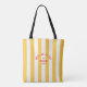 Red Meet Me At The Beach Yellow Cabana Stripe Tote Bag