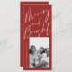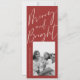This single photo holiday card design features a trendy handwritten style script in a "Merry and Bright" greeting, with plenty of room on the back for a long family message. The background of the card is red, but you can customise and personalise this card however you would like.