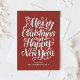 Red Merry Christmas and a Happy New Year Holiday Postcard