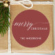 Modern holiday red sticker with the words “Merry Christmas”. Personalised this by adding your own text.