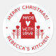 A personalised "made with love" sticker featuring a cute little red house with a heart and the words, made with love. Personalise it by adding your own name. A pretty finishing touch for all of your homemade Christmas gifts. Designed for you by Blackberry Boulevard.