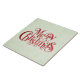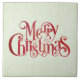 Ceramic tile with a fancy typographical design with a festive font in red which says Merry Christmas.