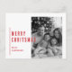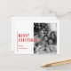 Send your warmest holiday wishes with this stylish red Christmas postcard featuring a timeless black and white family photo. The bold "Merry Christmas" in festive red contrasts beautifully with your monochrome photo, creating a classic and elegant holiday card. Personalise it with your family name to make it uniquely yours. Perfect for spreading holiday cheer in a modern and sophisticated way.
