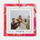Celebrate the season in style with this vibrant photo ornament featuring a bold hand-marbled design in rich red and pink tones. The swirling background adds a joyful pop of colour, while the framed centre showcases your favourite photo.