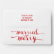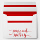 Red and White Merry and Married | Holiday Printed Envelope. Elke Clarke © Red hand lettered script typography. Red and white striped pattern on inside flap. More styles and colours available in our shop. www.zazzle.com/epclarke