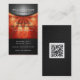 Professional customisable colourful hi-tech business card template with silver tone metallic-like details, red and orange spectral rays and QR code on back. Severe and elegant look. Don't forget to remove or replace the sample QR code