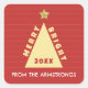 Red Minimalist Christmas Tree Name Square Sticker