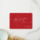Personalized Christmas thank you cards feature minimalist elegant merriest Christmas script in festive red and white, modern and simple.