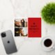 This delightful bright red design features two of your favourite photos on one side and a Happy Holiday greeting in modern typography on the other half of the card in an elegant real gold foil. Together with your family name and year in a smaller simple font below, the words and heart above make up a Christmas Tree shape. The reverse features your personalised message but you can also leave it blank to write it by hand later. To customise this card, click on the ´´Personalise´´ button and change the photos and text to your own.