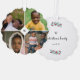 Family Christmas ornament personalised with four family photos, your initial, family name, and the year. Christmas ornament printed with four family photos around your initial.