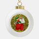 Beautiful & Old Fashioned Ceramic Ball Christmas Ornament Featuring Red Mittens Candy Cane Gold Faux Glitter Design