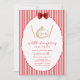 celebrate your baby shower with our adorable cute red " little dumpling is on the way" baby shower invitation, design feature with wave frame on stripe background, cute watercolor whimsical chinese dumpling and chopsticks. You can customize text and also match with other baby shower party decor in our collection.