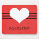 Sweet and charming Modern Heart Mousepad featuring a dark red background and a cute heart and striped border. This cute and girly mousepad will add style to any workspace. Customise with the text of your choosing. Click on "Customise" to find additional personalisation options.