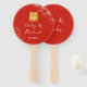 Red modern line floral script Chinese wedding Hand Fan