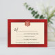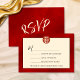 A gold double happiness symbol on a shimmering red background. RSVP Chinese Wedding Card.