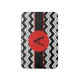 Make a fashion statement with your home decor with this mat monogrammed with your initial. Use in the bath, kitchen, bedroom or any room in the house. The Chevron ziz zag (zizzag) graphic design is one of the hottest art and design trends, and is extremely popular from fashion to home decor. This sophisticated black and white chevron rug is given an eye popping dash of colour with a red circle for personalising with your monogram initial and sits on a black strip with red edges. Easy to customise!