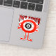 Red unhappy monster with text NOT FUNNY