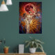 Red Moon Crane Symbolic Art Poster