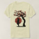 Asian-Japanese design of a samurai standing under a red moon, surrounded by red flowers and birds.