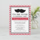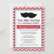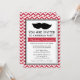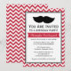 A moustache and chevron patterned birthday party invitation in red, black, and white for hipsters who heart staches!