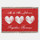 Red Mr and Mrs throw blanket for newly weds couple Romantic wedding gift idea for newly weds / just married groom and bride / husband and wife couple. Personalised slogan like together forever. Vintage heart look design.