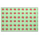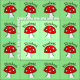 Whimsical red cartoon mushrooms with a name above the cap. The background is pale mint green.