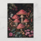 Discover a mesmerising fantasy world in this hyper-realistic oil painting. A cluster of red mushrooms with white spots stands tall in a dark forest, surrounded by vibrant flowers and plants. The symmetrical composition and glowing effects create a truly magical atmosphere.