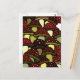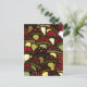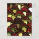 A postcard with lots of red capped mushrooms with white dots and pale stems.