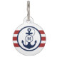 Navy blue anchor with red nautical stripes and monogram, add your pet's name and your phone number on the back.