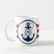 Red Nautical Stripes with Anchor and Monogram Coffee Mug