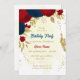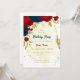 Romantic dark red & navy blue flowers with gold leaves botanical birthday party invitation