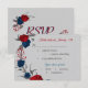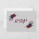 red & navy blue flowers meal choice botanical grey RSVP card