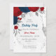 red & navy blue flowers silver birthday party invitation