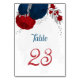 Romantic dark red & navy blue flowers with silver leaves botanical wedding table number card.